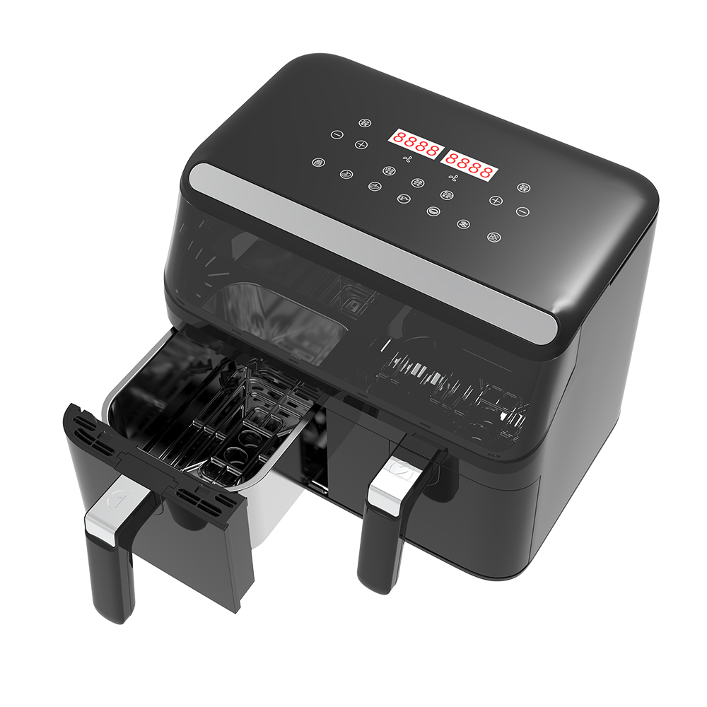 Nagtatampok ang YYZG-800A Air Fryer ng isang 30-minuto na function ng timer na nagbibigay-daan sa iyo upang itakda ang oras ng pagluluto ayon sa iyong mga pangangailangan. Sa isang saklaw ng temperatura ng 80 ℃ -200 ℃, madali mong ayusin ang temperatura upang makamit ang perpektong mga resulta ng pagluluto. Ang electronic panel ay nagbibigay ng kaginhawaan at madaling operasyon, habang ang pagpapaandar ng menu ng paglipat ay nagbibigay -daan sa iyo upang lumipat sa pagitan ng iba't ibang mga mode ng pagluluto nang walang kahirap -hirap.  Ang YYZG-800A AIR FRYER ay gumagamit ng malakas na teknolohiya ng sirkulasyon ng hangin upang lutuin ang iyong pagkain nang pantay-pantay, at ang mababang operasyon ng ingay ay nagsisiguro ng isang mapayapang karanasan sa pagluluto.